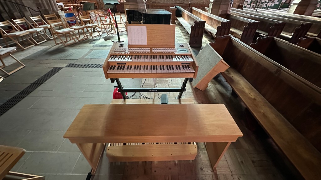 I have a portable digital organ available to hire for concerts and services. It’s compact, so it doesn’t take up much space, and you can check out the full spec here.